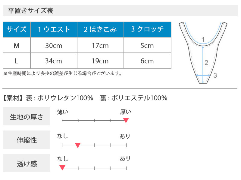 【置き寸法】(約) Mサイズ ウエスト30cm×股上17cm Lサイズ ウエスト34cm×股上19cm